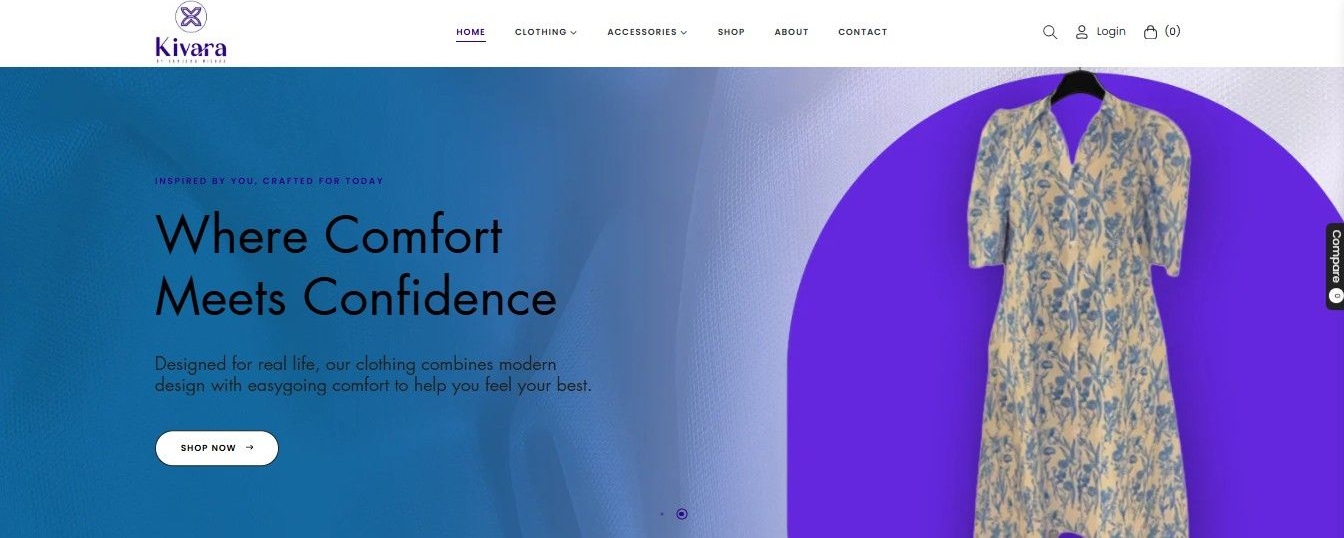 Kivara features style guides, size charts, lookbooks, and a seamless shopping experience with wishlist and quick-view options. Additional resources include order tracking, return policies, curated collections, and responsive support for inquiries related to fit, fabric, or styling.